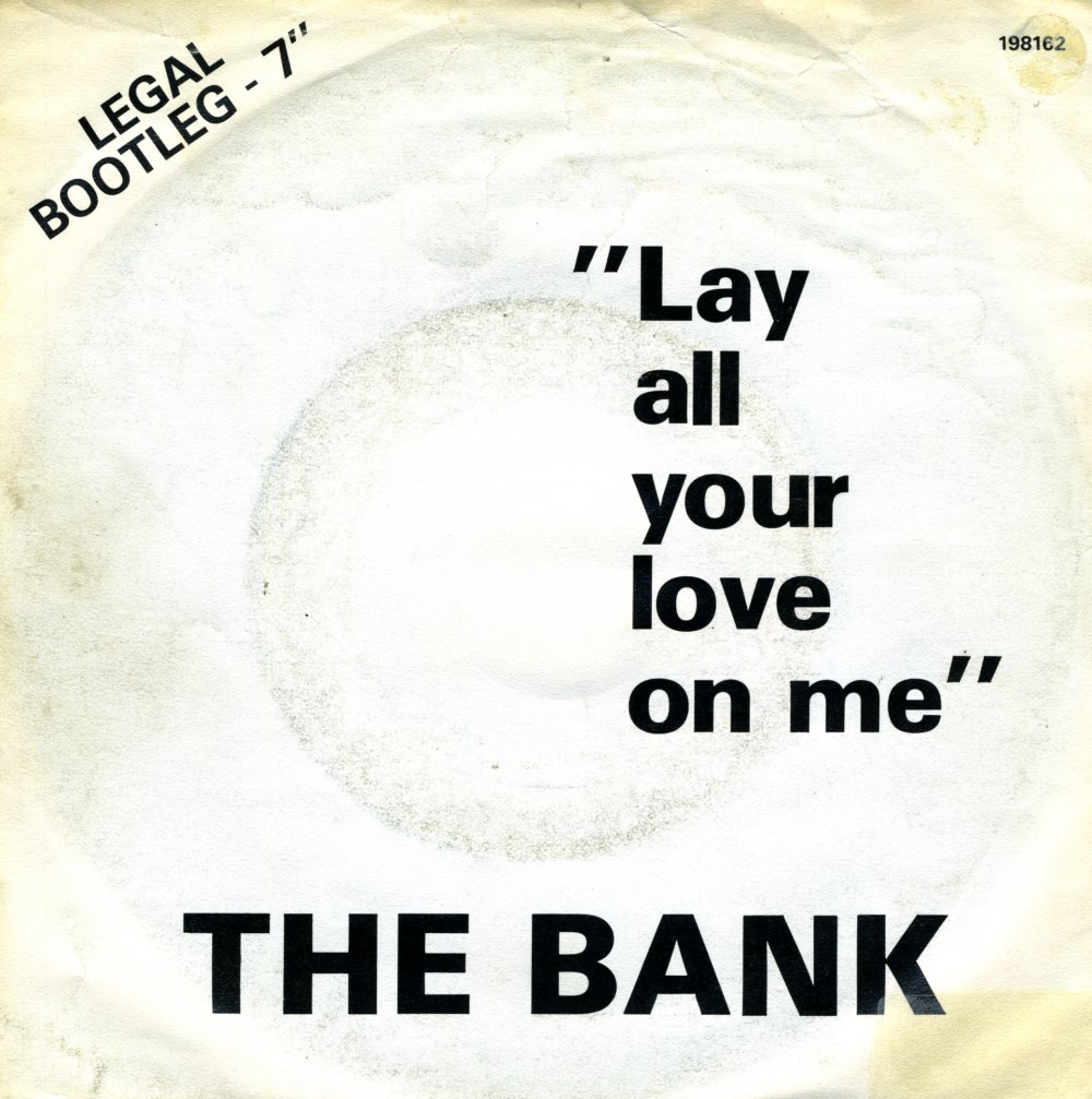 At the time of its release, much was made of the decision to release Abba's song 'Lay all your love on me' on 12" single only. I'm guessing of course, but I think that's where the unusual term 'Legal bootleg 7"' on the sleeve of this single comes from.The unknown band The Bank recorded a version of Abba's song and released it on the more popular 7" vinyl format. It didn't help this release, however: it was not a hit.