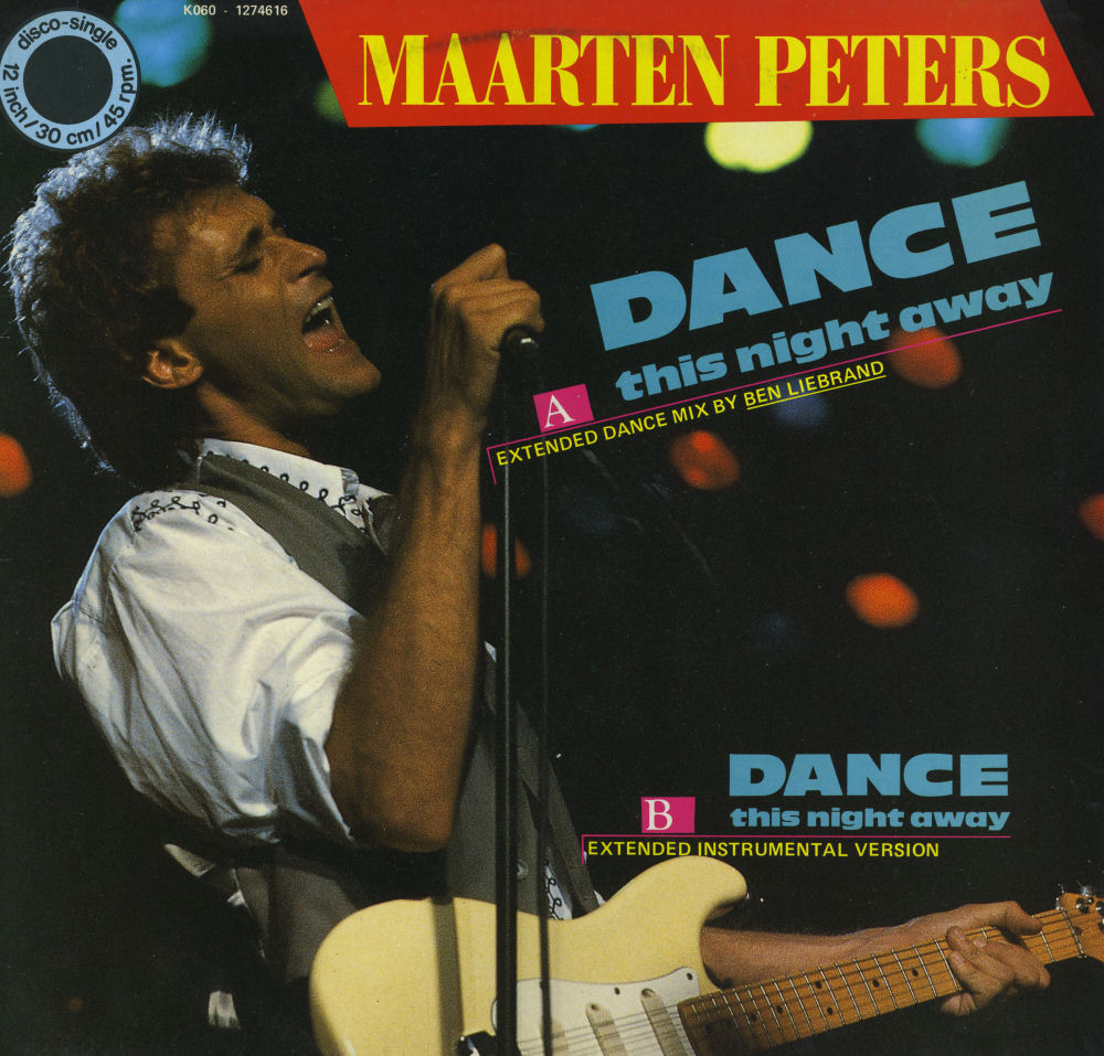 The unsuccessful single 'Dance this night away' by Maarten Peters was his only one to be released as a 12" single featuring a remix. And it was quite a famous name who remixed his track: Ben Liebrand, who'd had several hit singles to his name during the mid-Eighties. Even he couldn't help this track.The remix has all the hallmarks of a Liebrand mix: a new dance beat, several elements from the original song and a good groove. And an interesting buy: these days you can't find this 12" single anywhere.
