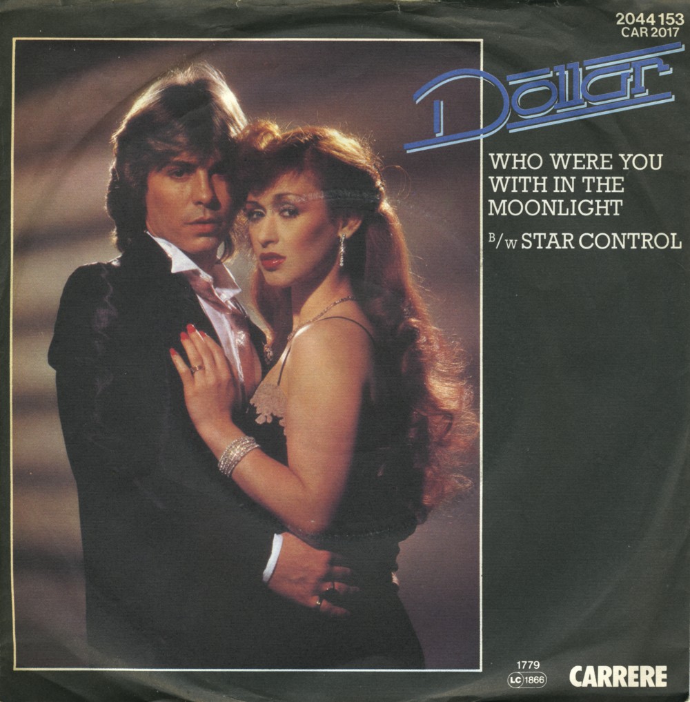'Who were you with in the moonlight' was the second single by the duo Dollar, releasedin April 1979 and produced by Christopher Neil.Their debut single 'Shooting star' had been a big hit in several European countries, but this single did less well in comparison: it only charted in the UK, Ireland and Australia, peaking at number 14, 17 and 39 respectively.