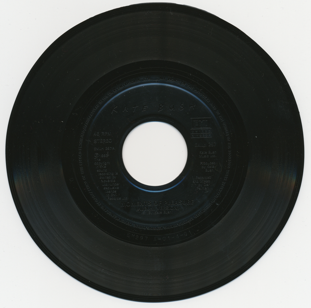 I would describe my latest vinyl acquisition as a shocker. I never knew that 'Moments of pleasure' by Kate Bush, released in 1993 as the second single off her album 'The red shoes' was released on a 7" single. But it was, albeit only on this jukebox version and never commercially.