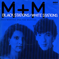 Martha and the Muffins's 1984 album 'Mystery walk' featured a sticker crediting the band as 'M + M o/k/a (once known as) Martha and The Muffins'. The album was produced with Daniel Lanois. The album gave the band - whatever they were called then - their biggest hit in years in their native Canada. 'Black Stations/White Stations' was an anti-racist anthem whose first verse took radio stations to task for refusing to play a song about mixed-race romance, a story that Martha Johnson had heard related on the radio while driving in her car.I remember I was really intrigued by this song in 1984, especially because of the interesting video. When I bought the single years later, the song was not as special as I'd remembered.