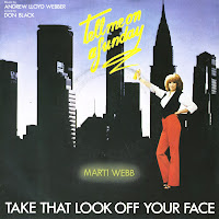 'Take that look off your face' was written by Andrew Lloyd Webber and Don Black for the musical 'Tell me on a Sunday' (1978). It was recorded and released by Marti Webb in 1980. It became a number 3 hit in the UK singles chart and peaked at number 7 in the Dutch Top 40. Marti Webb re-recorded the song on her 2003 album 'Limelight'.There are several cover versions of this song, performed by singers like Bernadette Peters, Denise van Outen and Sarah Brightman. Nothing beats the original, of course.