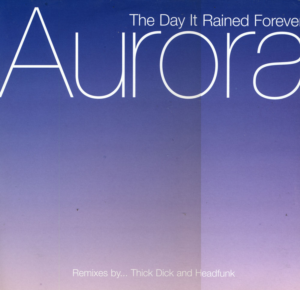 When Aurora released 'The day it rained forever' as a single, two promotional double 12" single sets were released. I already wrote about one set here, an attractive set with seven remixes.This second set, alas, is a different matter. It features just four remixes of the track, created by Headfunk and Thick Dick (no, I'm not making this up). Have a listen and I'm sure you'll agree that the other set is the better of the two.